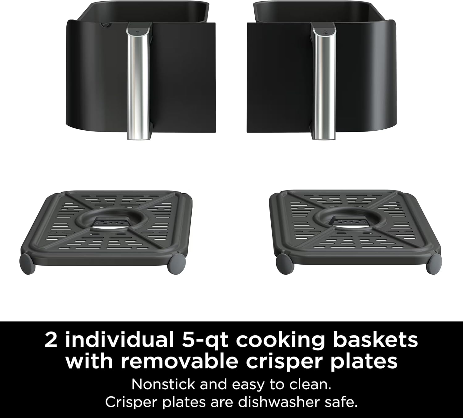 • DUALZONE TECHNOLOGY: The Smart Finish feature, unlocks cooking 2 foods 2 ways that finish at the same time, or the Match Cook feature, easily copies settings across zones for full 10-qt. capacity.